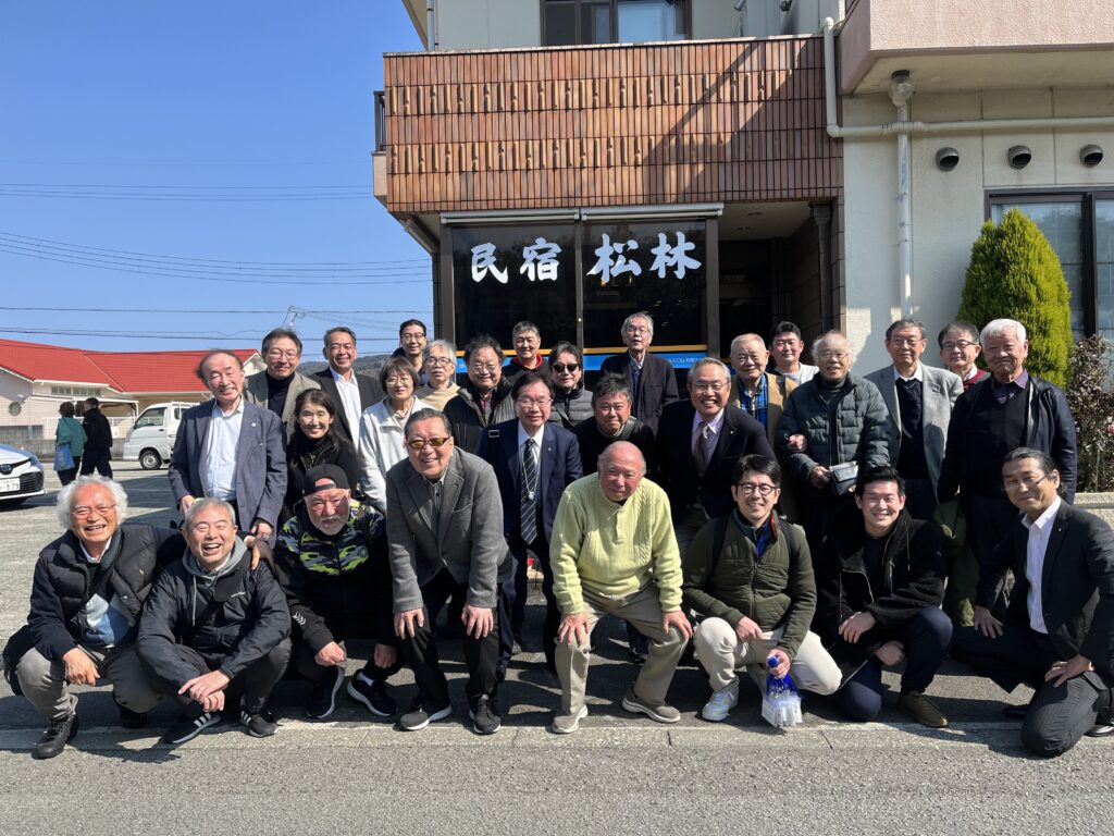 続いて民宿松林に到着、西川文男(大14回)先生の乾杯のご発声により懇親会に移りました。クエ料理を囲んで学生時代の思い出話に花が咲き、また飲み放題の席で杯を酌み交わし、卒業年を問わず和やかに交流が行われ、参加者全員で楽しいひと時を過ごしました。最後に那須馨(大30回)先生の力強いエールのもと皆で学歌斉唱し、大阪府同窓会副会長水川健司先生(大29回)の閉会の辞で楽しい宴も閉会となりました。