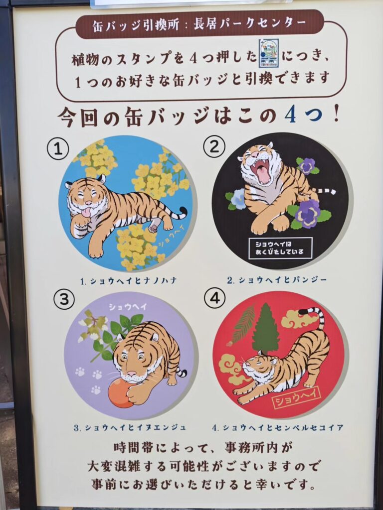 長居植物園恒例のスタンプラリー、天王寺動物園とコラボで缶バッヂがもらえます。By odu200 / 2025/12/5 長居植物園と天王寺動物園のコラボ企画、今は虎🐅です✨是非 Masanori Mizui 今は天王寺動物園に新しく来てくれたアムールトラ その名も「しょうへい」君、そうアノ大谷翔平さんからもらった名前です 虎党にはたまりまへんな〜
